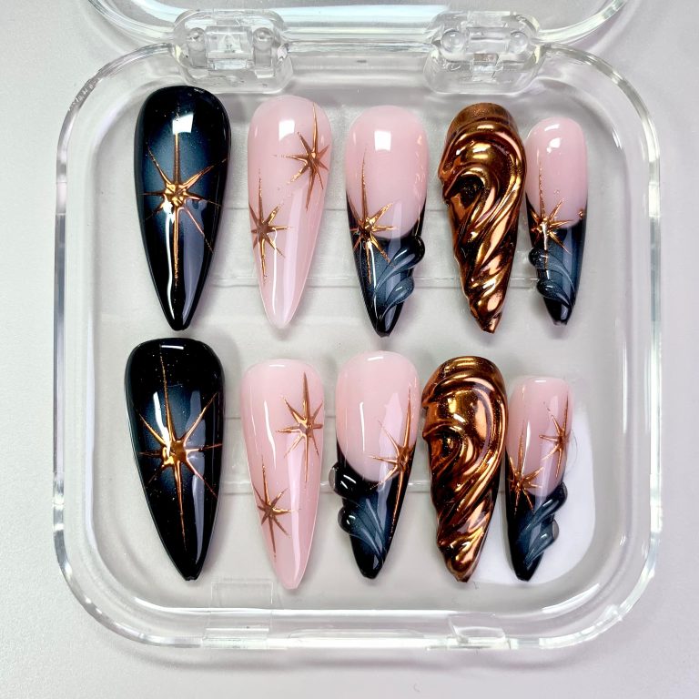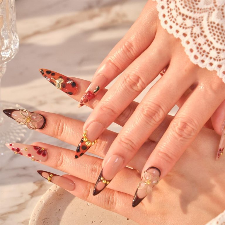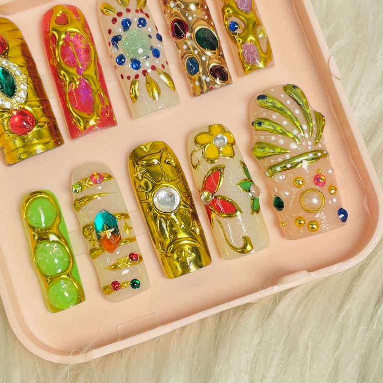3D Christmas Nails, Santa & Reindeer Press-On Set, Cute Holiday Handmade Design
