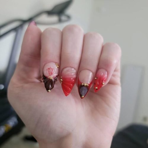 3D Red Christmas Nails, Cute Candy Press-On Set, Bear & Gingerbread Design