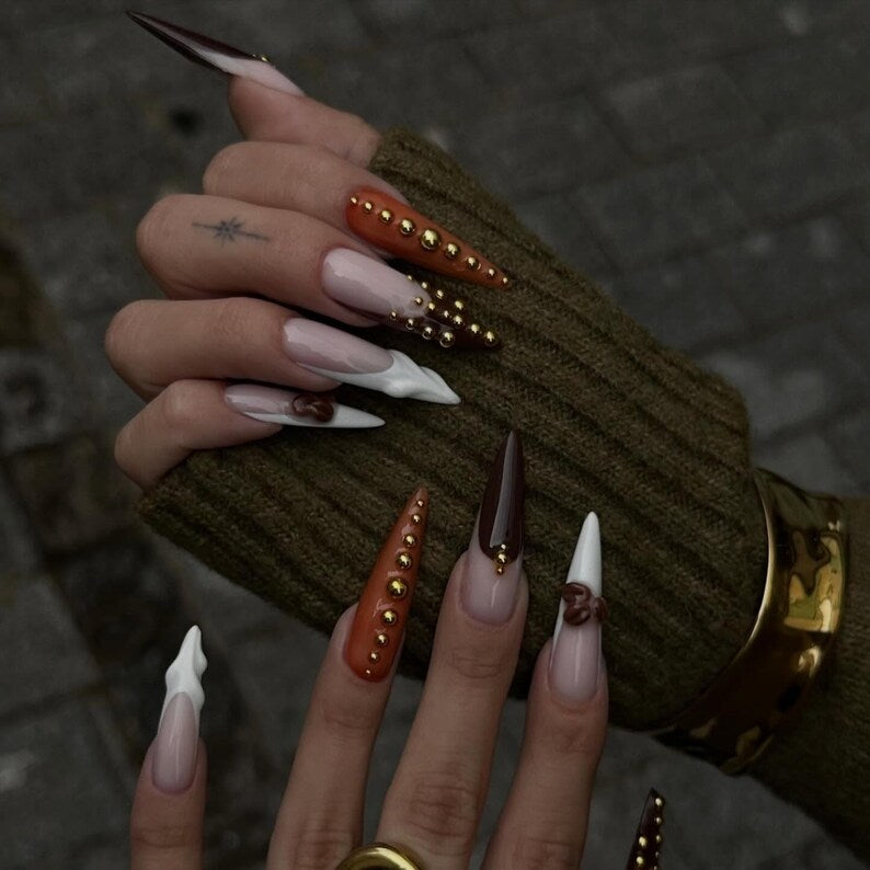Edgy Brown Fall Press On Nails | Tortoiseshell & Geometric Nail Art | Handmade Luxury Nail Set | Gothic Chic Press On Nails