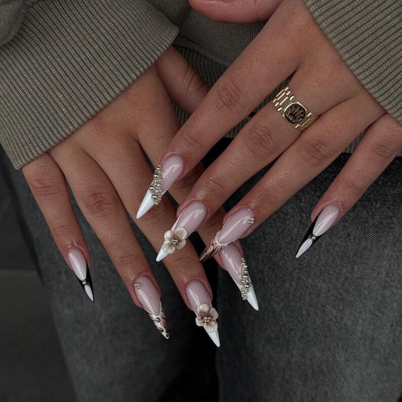 Elegant French Tip Press On Nails blend refined elegance with bold artistic expression for a...