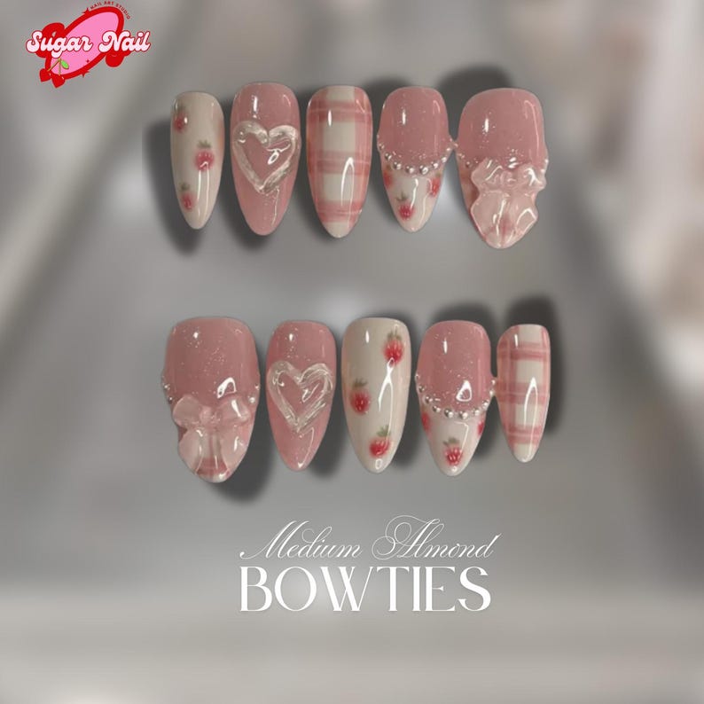 Indulge in cuteness overload with the Sweet Strawberry Plaid press-on nails! Featuring adorable hand-painted strawberries,...