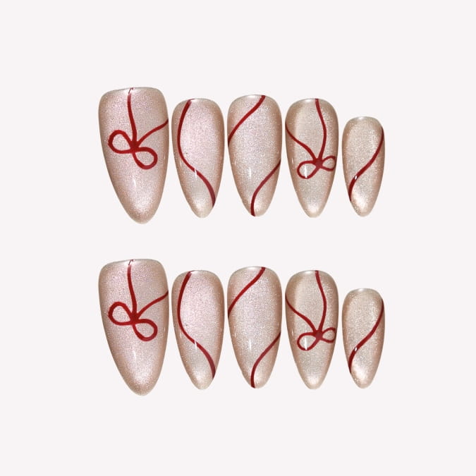 💖 Red Velvet Bow Luxury Press-On Nails: Instant Romance Unwrap the charm of the Red...