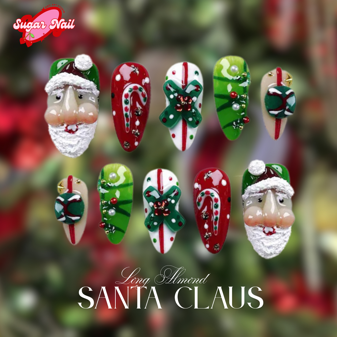 Santa Claus Press On Nails – cute Christmas Santa designs with festive sparkle. Easy to...