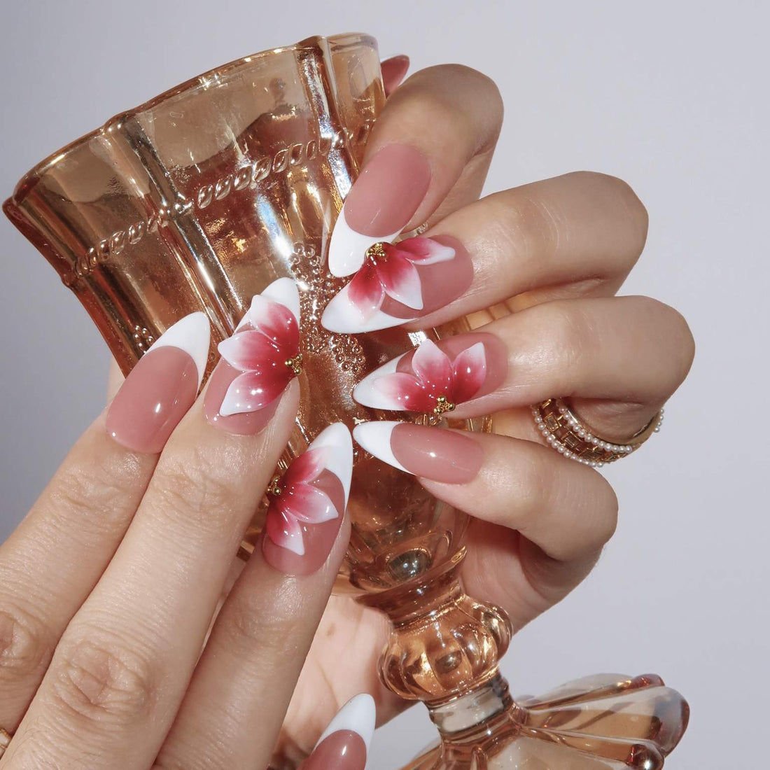 Scarlet Petals is a perfect blend of elegance and boldness. The soft nude-pink base is...