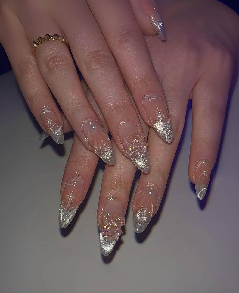Fairy Jelly Rose Blush French Style Star White Cat eye 3d Butterfly Nails | Reusable Custom Handmade Press on Nails | Twinkle Cute nails