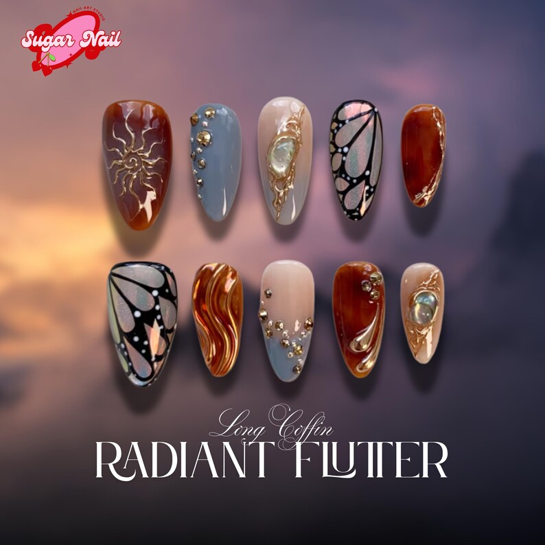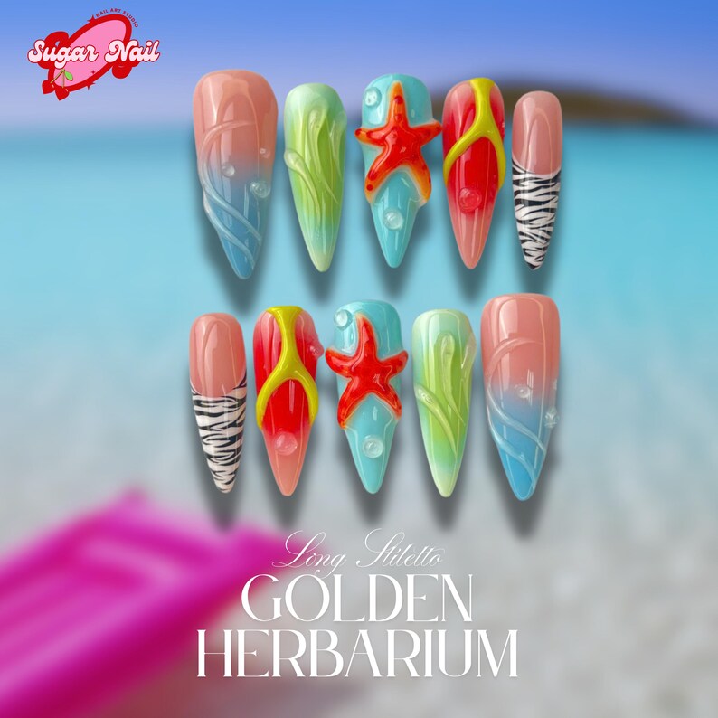 Green Koi Pond Press On Nails | 3D Floral & Fish Nail Art | Green Nature Inspired Nails | Handmade Press Ons | Artistic Garden Nails