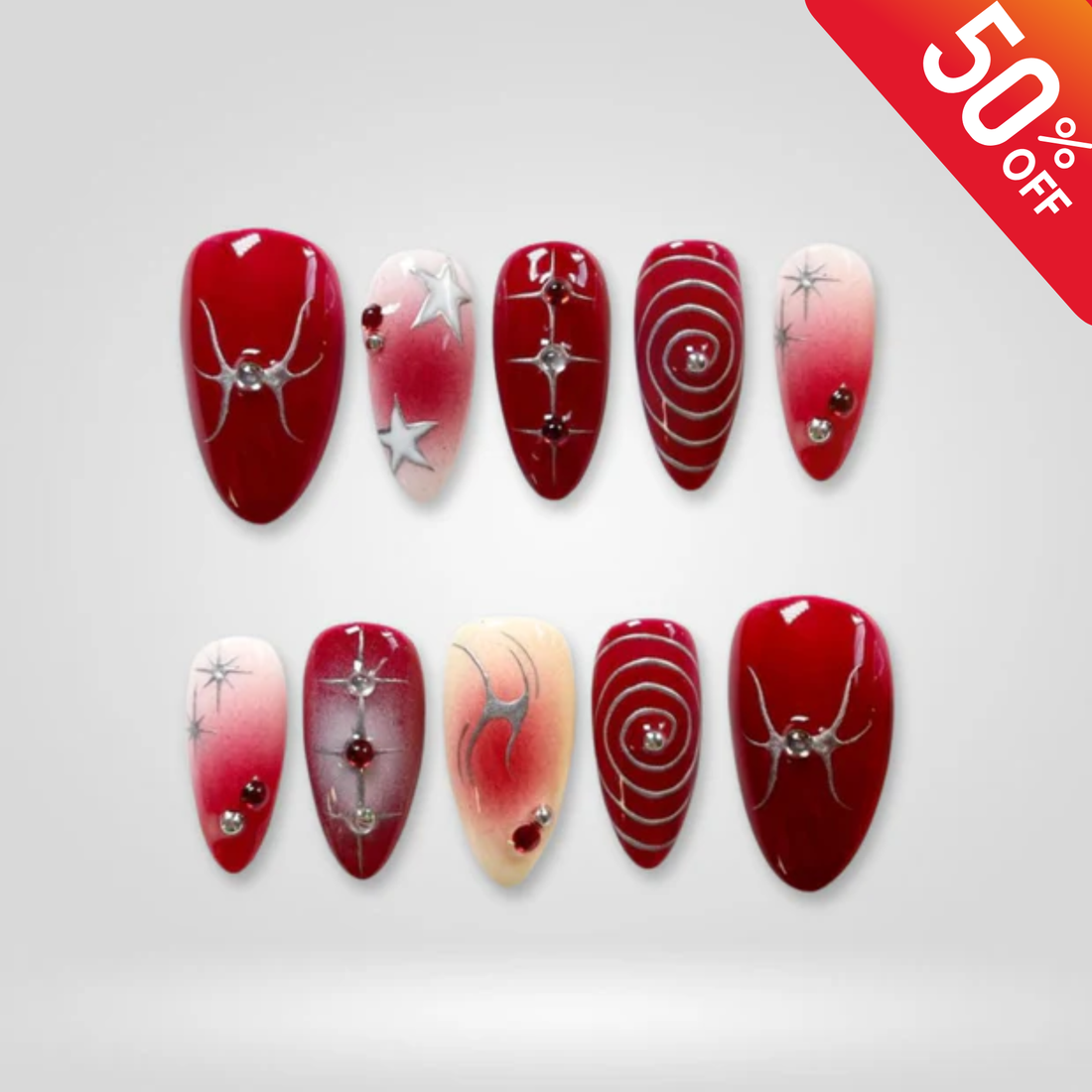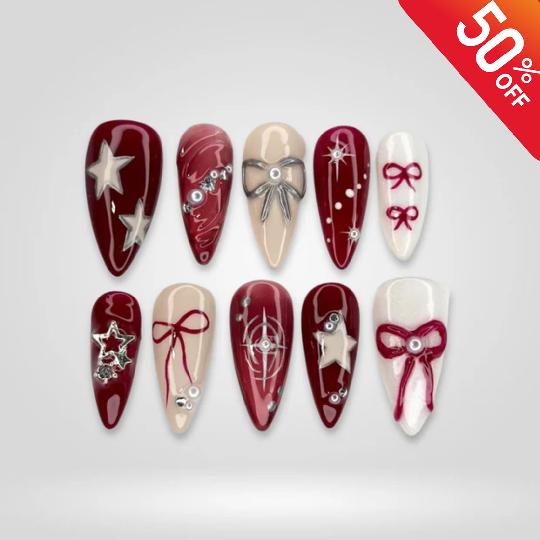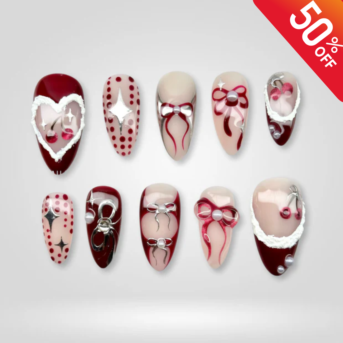 Crimson Valentine Bow Press On Nails are designed for romantic girls who love vintage charm...