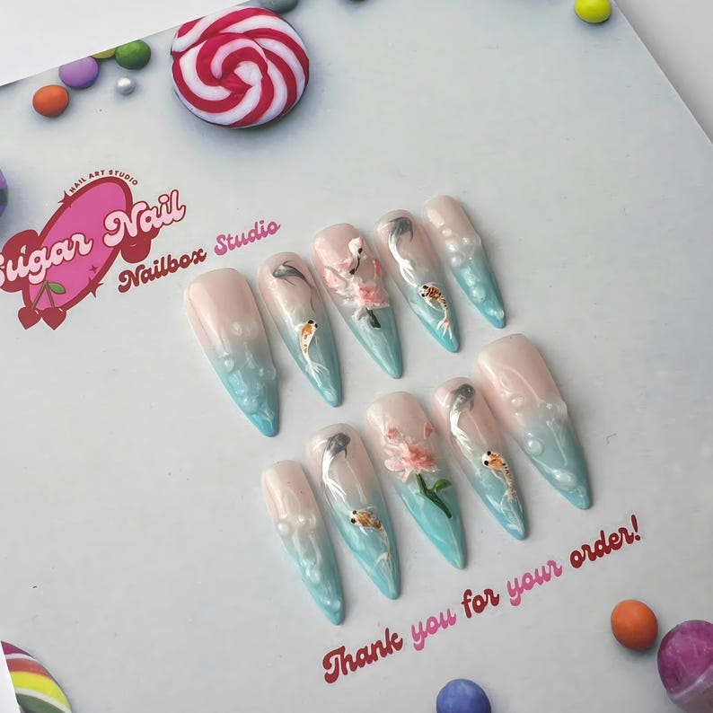 Each SugarNail set is crafted by hand using high-quality acrylic and gel, finished with a salon-grade glossy topcoat. Whether you're planning a holiday, prepping for a special event, or just want effortless beauty at home, our nails bring elegance and durability to your fingertips โ no appointment needed.
