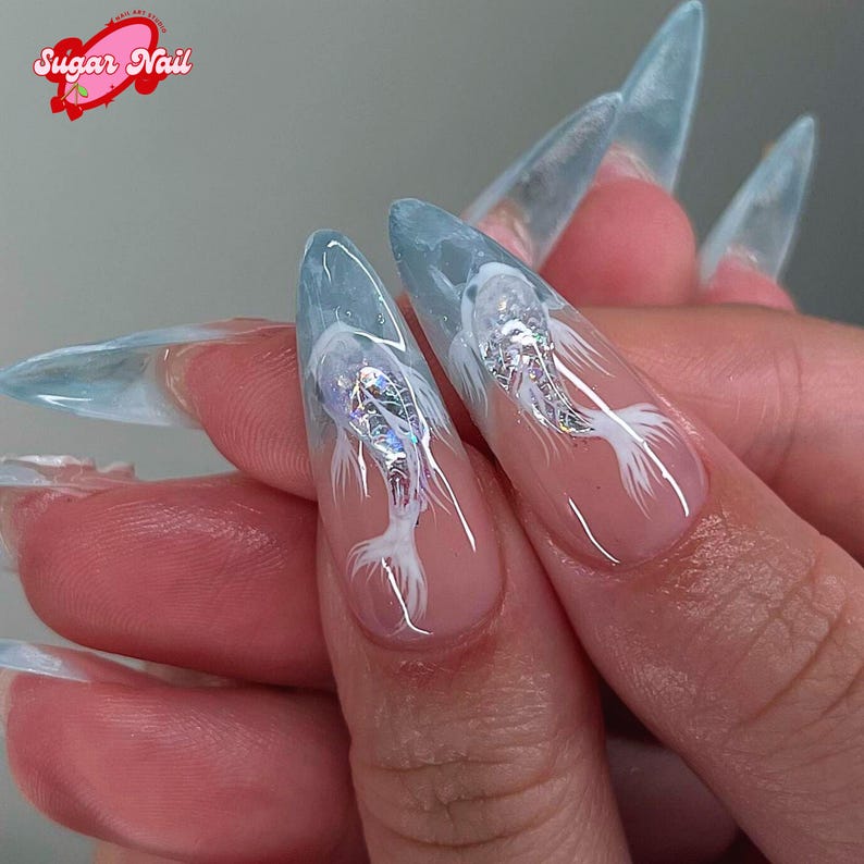 Aqua Grace โ Soft aqua-toned press on nails with elegant, refreshing ocean vibes. Long-lasting, graceful design perfect for summer, vacations, and everyday wear.
