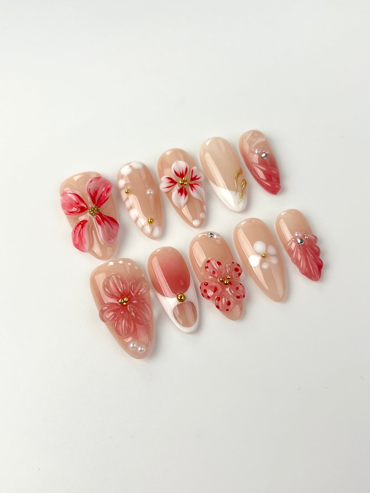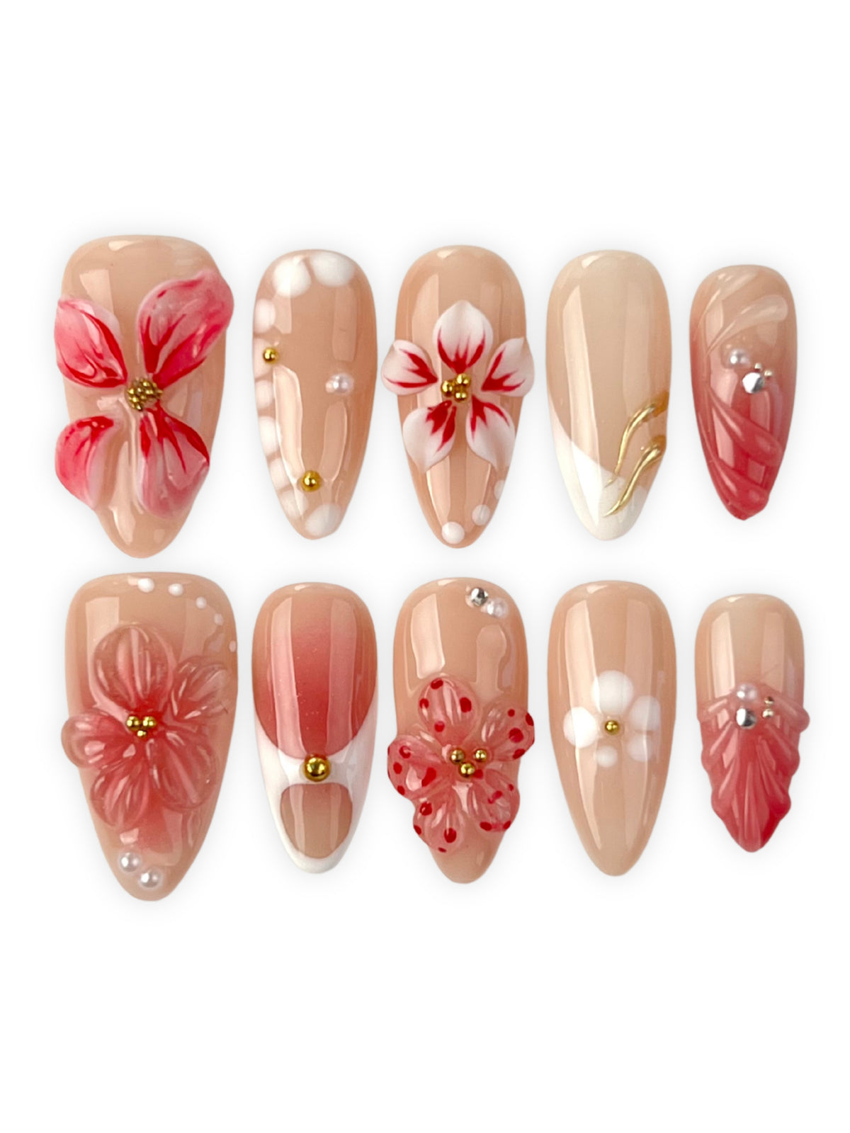 Embrace soft elegance with Blushing Flora — a handcrafted press-on nail set inspired by delicate blooms and romantic hues.