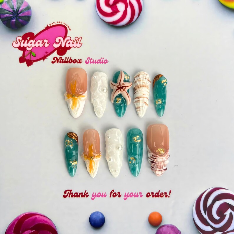 ✔ Hand-sculpted 3D floral & starfish designs for a statement manicure