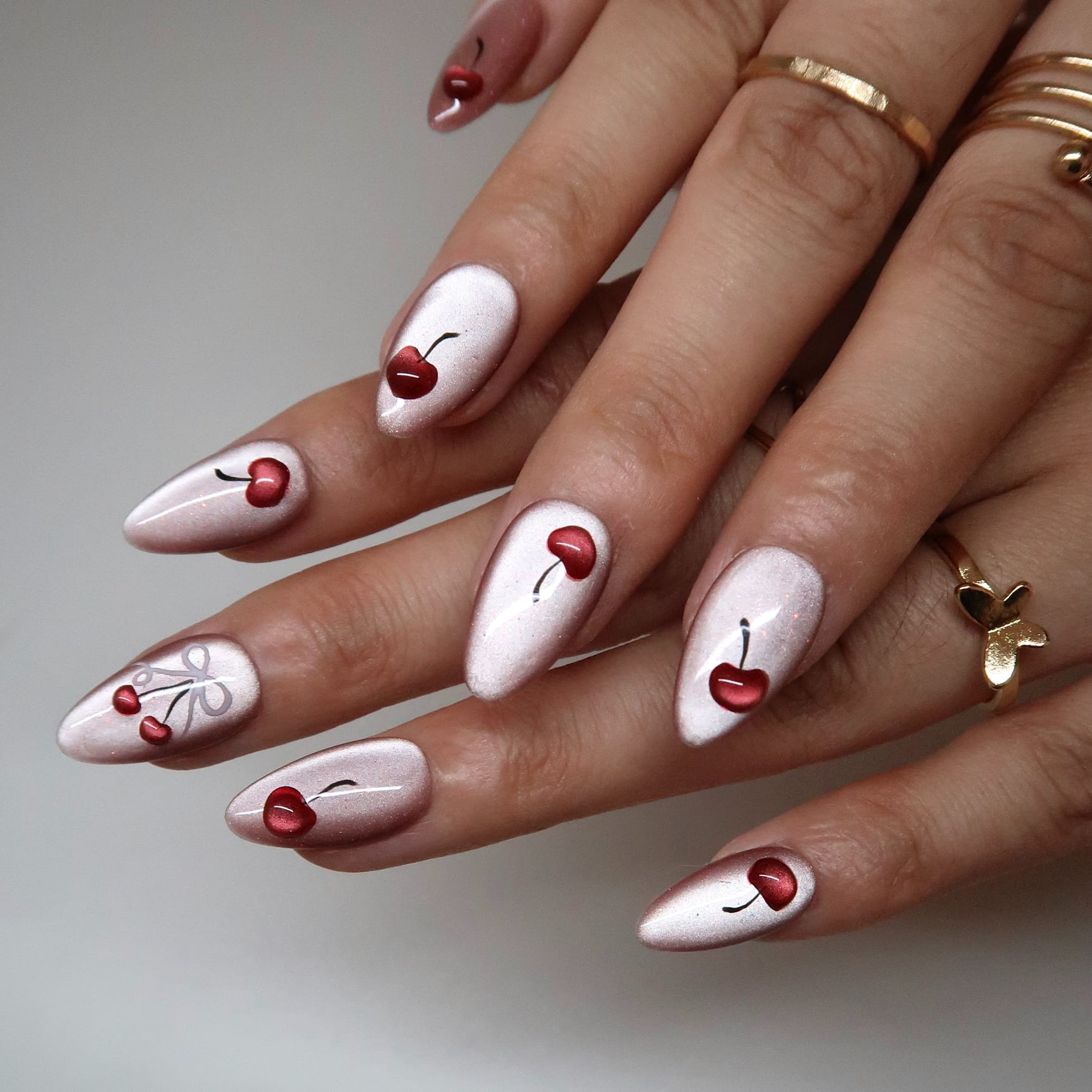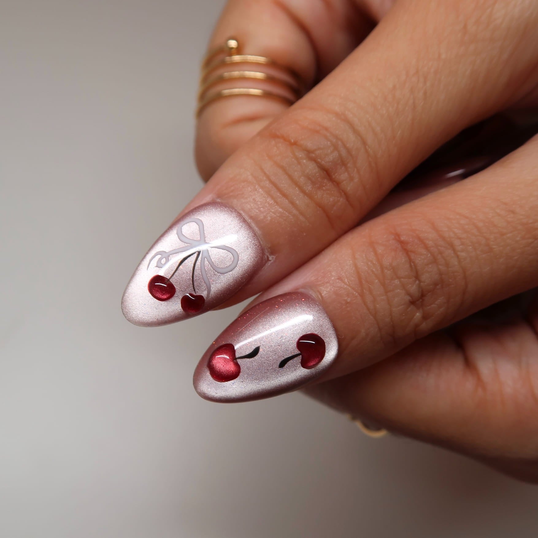 Capture the fleeting beauty of a gentle flush. This manicure features a translucent, juicy cherry hue that mimics the natural, healthy glow of blushing cheeks. It’s a whisper of color that brings a touch of innocent allure and vibrant life to your fingertips.