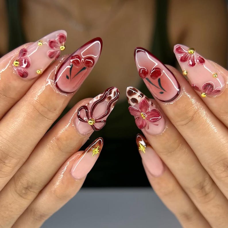 Elevate your nail game with these stunning handcrafted Cherry Blossom 3D Floral Press-On Nails. Featuring elegant blossoms, delicate cherry accents, and gold details, these nails are perfect for spring and special occasions! ๐