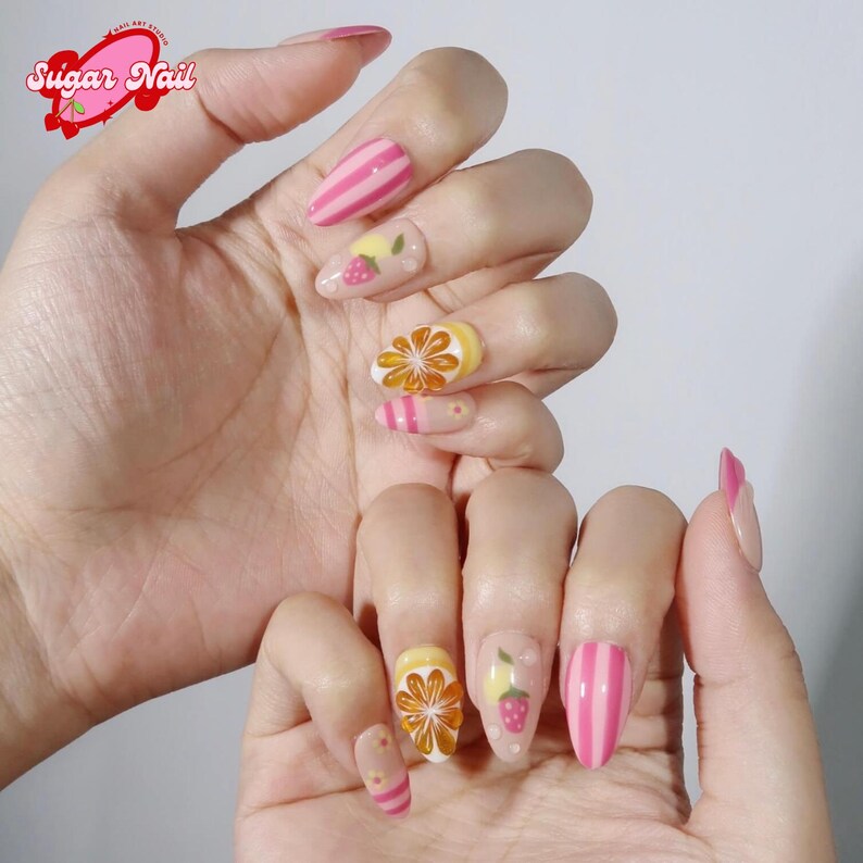 Citrus Breeze nails combine the sweetness of strawberries with the zest of citrus fruits, creating a fun, vibrant, and uplifting nail look. Perfect for anyone who loves bright, playful, and standout summer nail art.