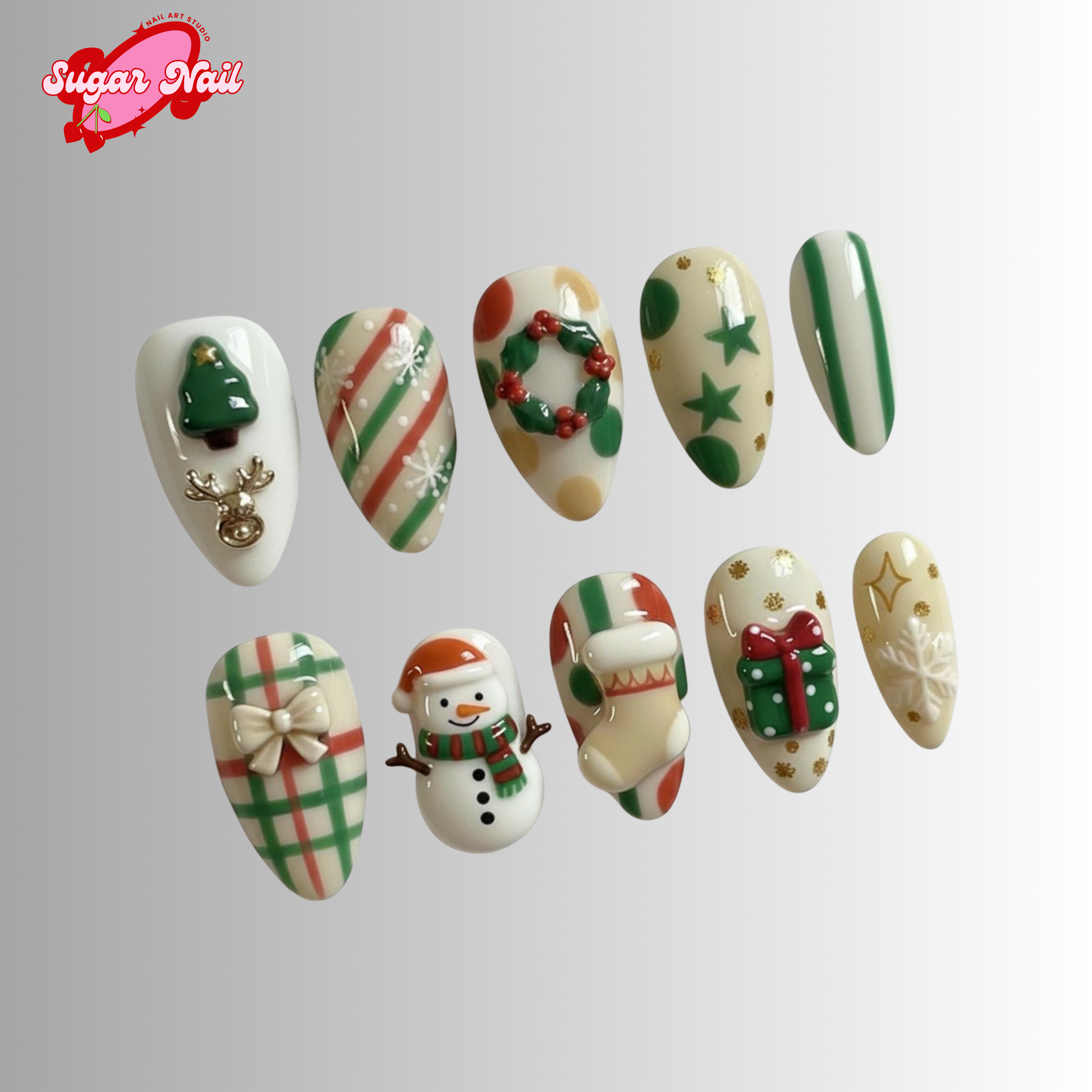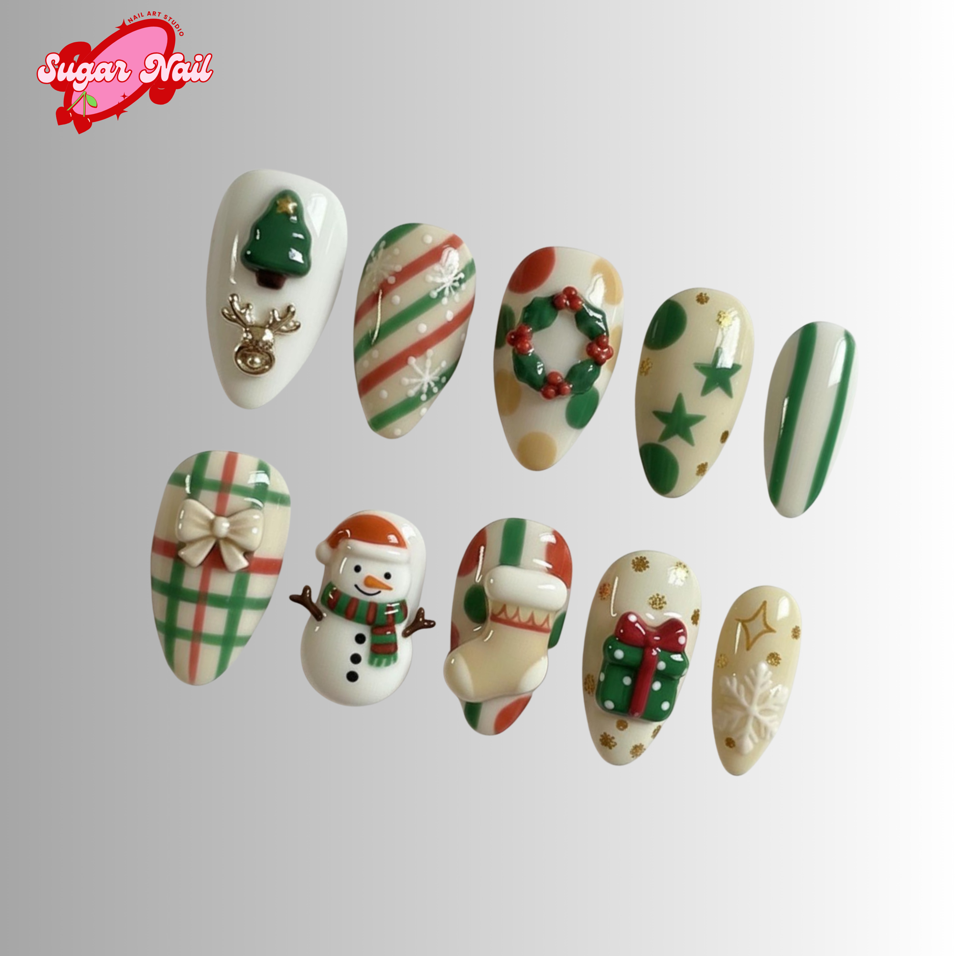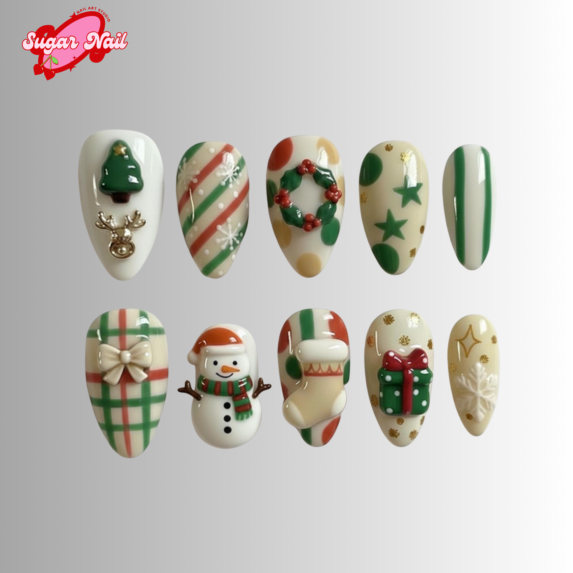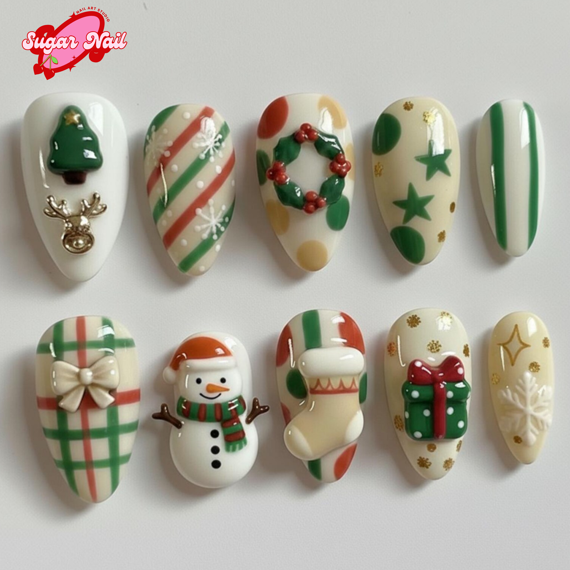 ๐โจ Classic Christmas Press On Nails โ timeless red, green, and gold holiday designs. Easy to apply, long-lasting, and perfect for festive Christmas celebrations.