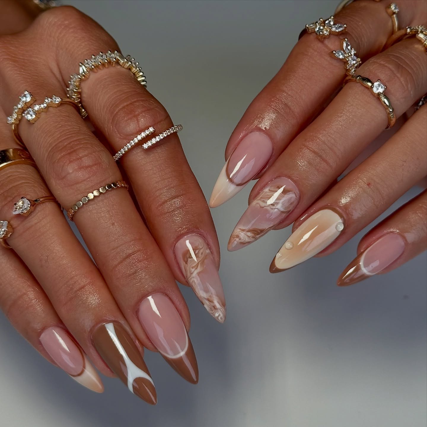 Each set carries a gentle, polished aesthetic: creamy mocha shades, glossy nude finishes, and fine cross accents that feel both modern and timeless. Perfect for elevating your everyday look while keeping things soft, clean, and effortlessly refined.