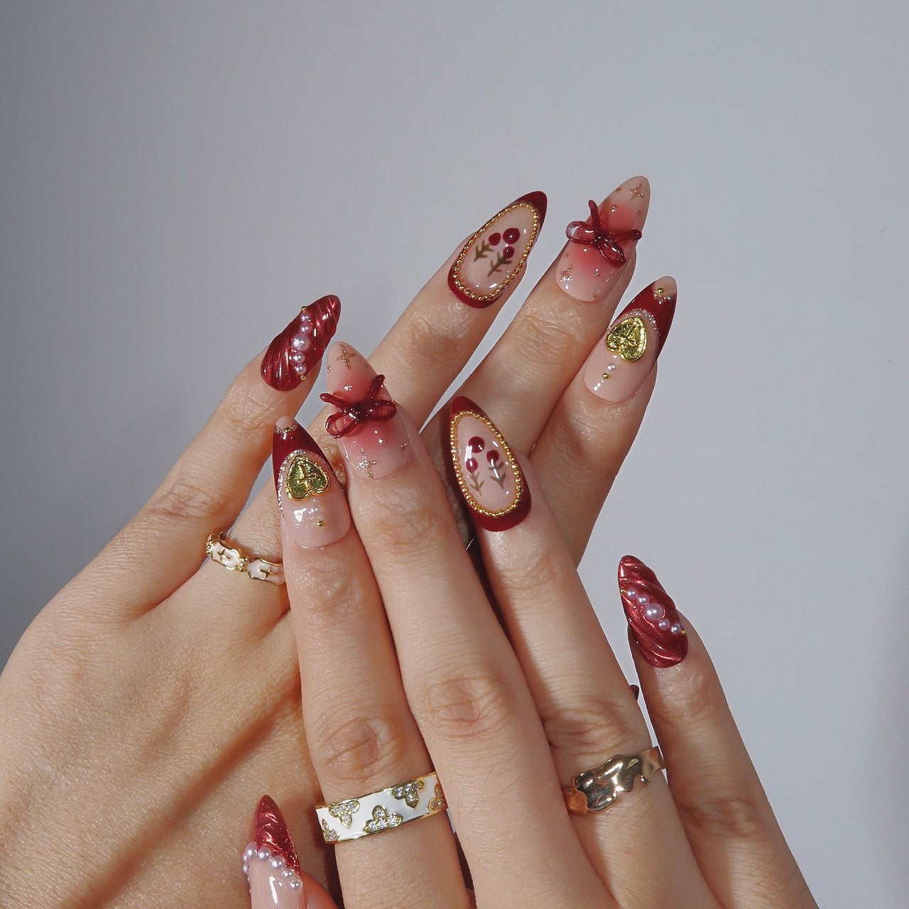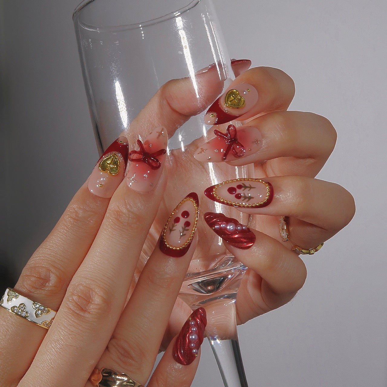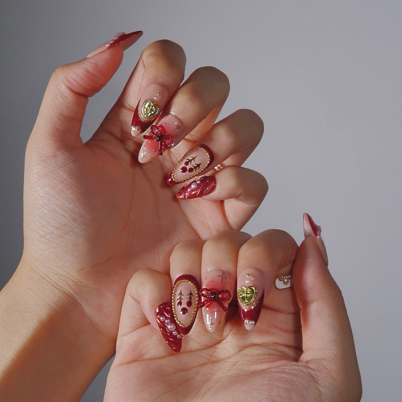 Each SugarNail set is crafted by hand using high-quality acrylic and gel, finished with a salon-grade glossy topcoat. Whether you're planning a holiday, prepping for a special event, or just want effortless beauty at home, our nails bring elegance and durability to your fingertips โ no appointment needed.