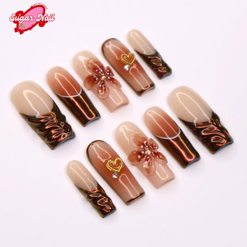 Each SugarNail set is crafted by hand using high-quality acrylic and gel, finished with a salon-grade glossy topcoat. Whether you're planning a holiday, prepping for a special event, or just want effortless beauty at home, our nails bring elegance and durability to your fingertips โ no appointment needed.