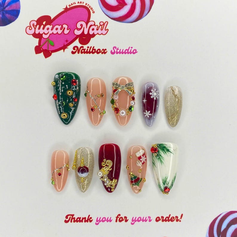 Each SugarNail set is crafted by hand using high-quality acrylic and gel, finished with a salon-grade glossy topcoat. Whether you're planning a holiday, prepping for a special event, or simply want effortless beauty at home, our nails bring elegance and durability to your fingertips — no appointment needed.