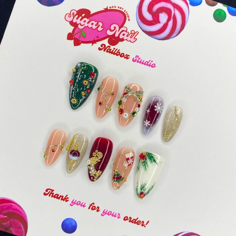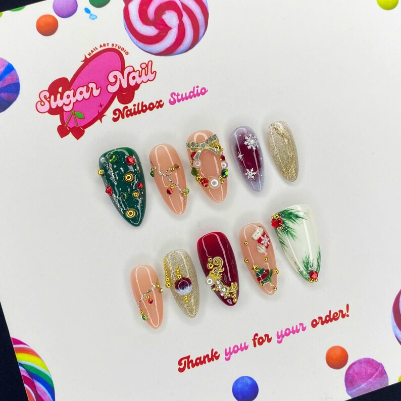Flawless Xmas Press On Nails โ elegant holiday designs with festive sparkle and a flawless glossy finish. Easy to apply, long-lasting, perfect for Christmas beauty.