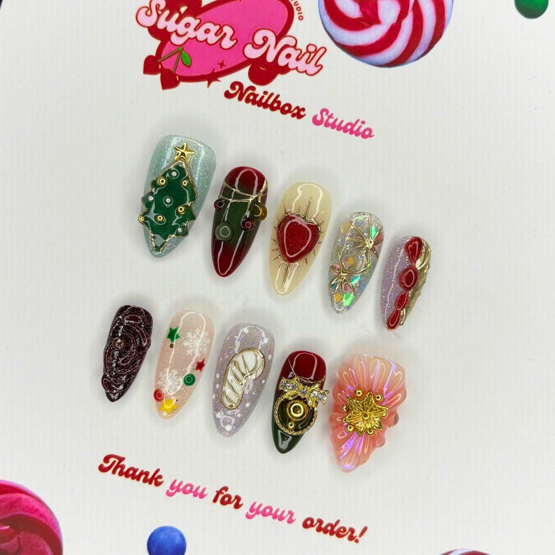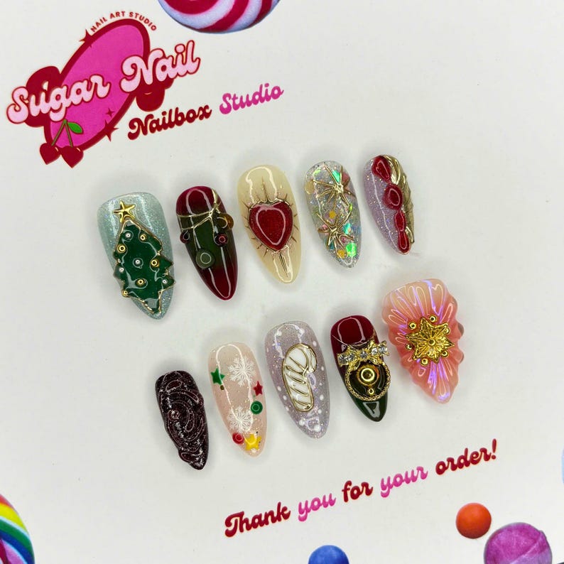 Each SugarNail set is crafted by hand using high-quality acrylic and gel, finished with a salon-grade glossy topcoat. Whether you're planning a holiday, prepping for a special event, or simply want effortless beauty at home, our nails bring elegance and durability to your fingertips — no appointment needed.