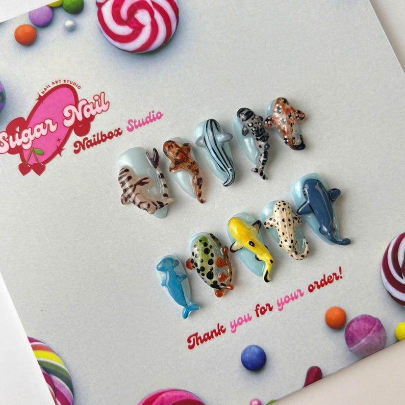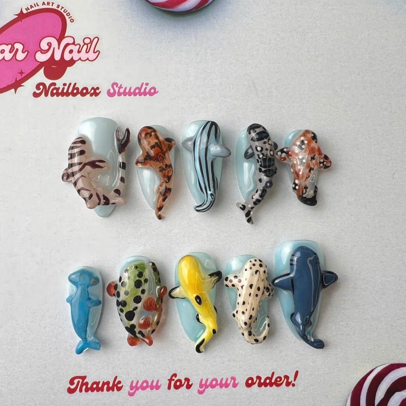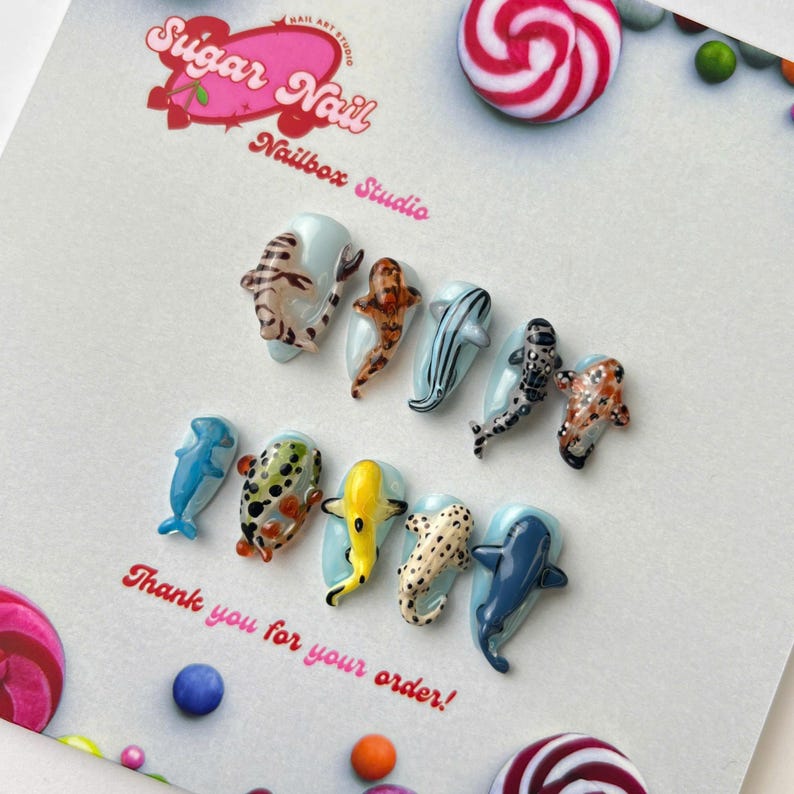 Imagine the thrill of the deep ocean at your fingertips! Whether you’re a shark lover, a marine enthusiast, or just want to stand out with stunning nail art, these handcrafted nails will make a statement. Order now and let your nails make waves! 🌟