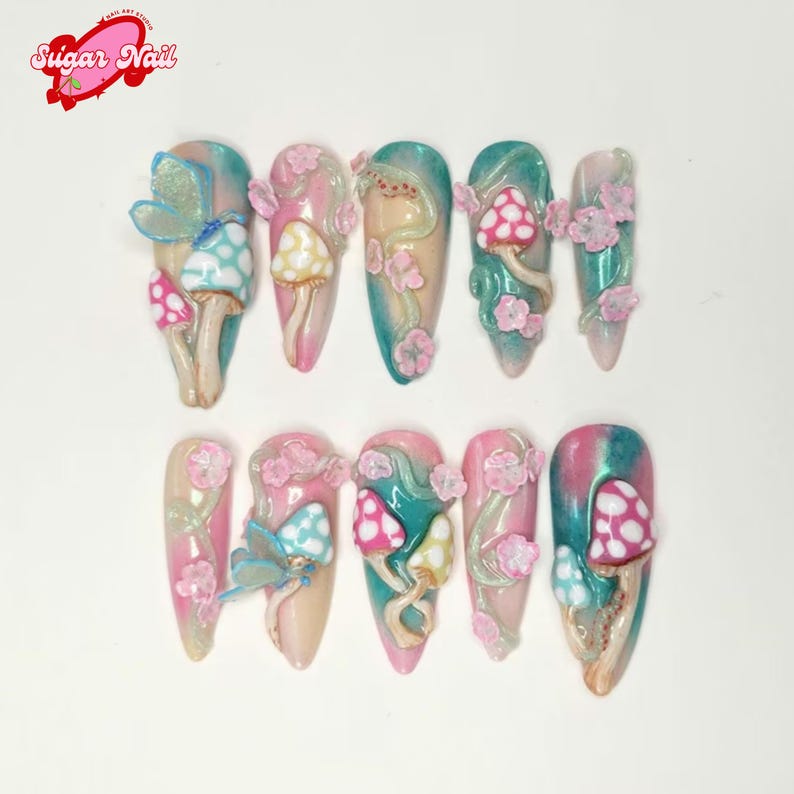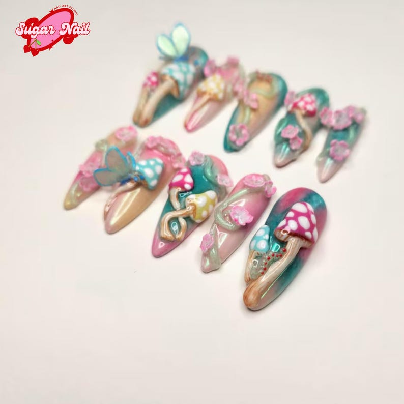 Mushroom Dream Press On Nails โ Whimsical mushroom-inspired designs with soft earthy tones. Long-lasting, cute, and perfect for cottagecore lovers, cozy vibes, and everyday charm.