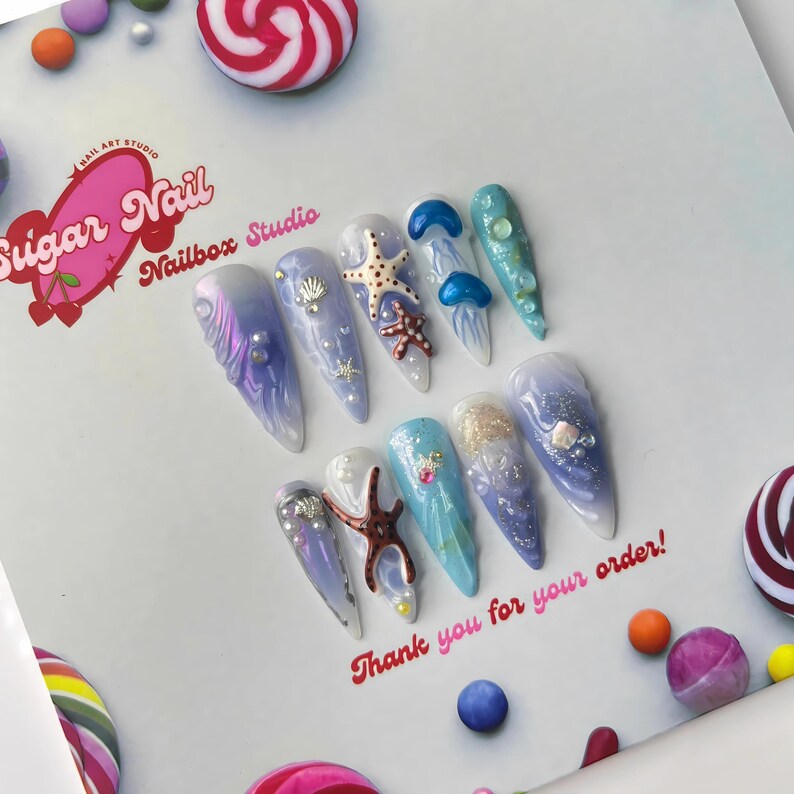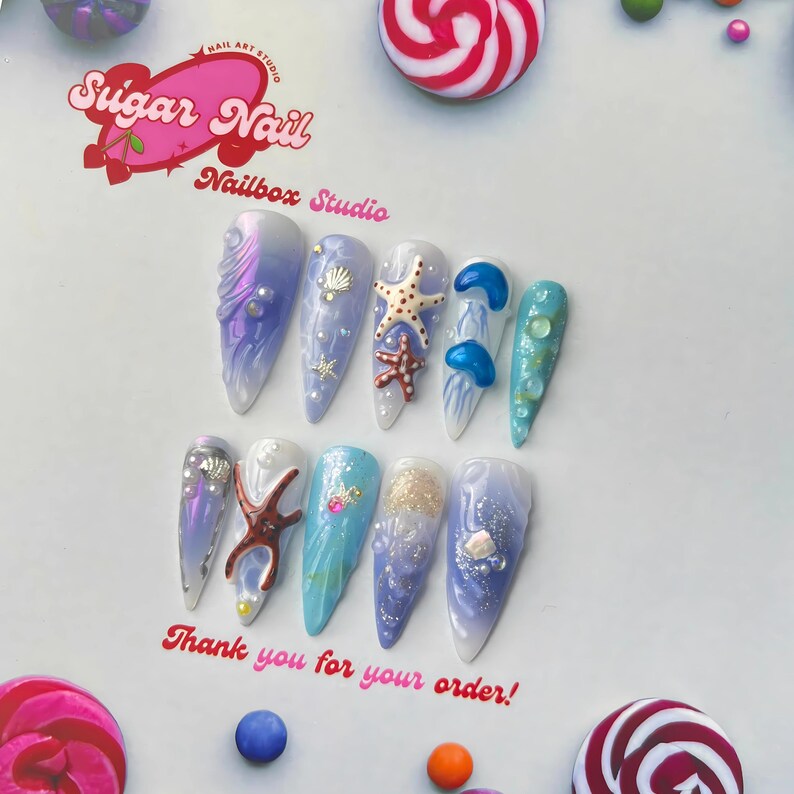Each SugarNail set is crafted by hand using high-quality acrylic and gel, finished with a salon-grade glossy topcoat. Whether you're planning a holiday, prepping for a special event, or just want effortless beauty at home, our nails bring elegance and durability to your fingertips โ no appointment needed.