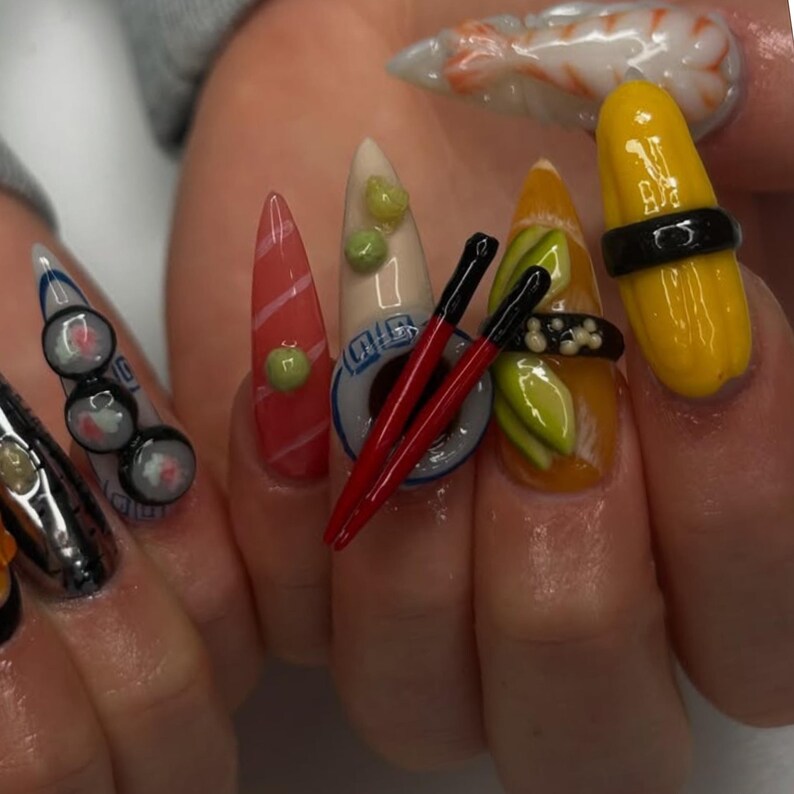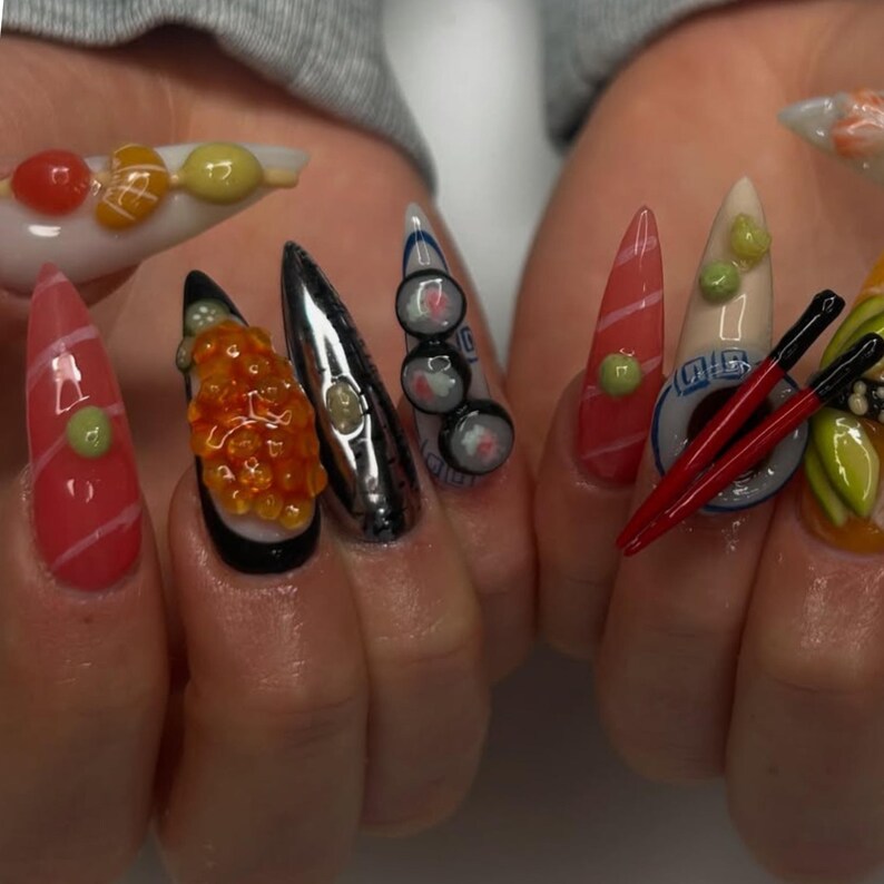 🍣 Sushi Lover Press On Nails | 3D Japanese Food Nail Art | Handmade Nigiri & Maki Nail Set | Fun Kawaii Sushi Design Nails | Unique Foodie Press Ons