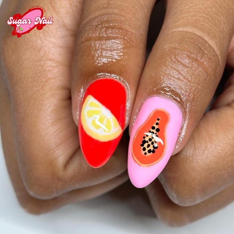 Romantic Summer captures the glow of sunny days and the sweetness of seasonal fruits, wrapped in a soft, feminine aesthetic. Perfect for anyone who loves elegant yet playful nail art that highlights the beauty of summer vibes.
