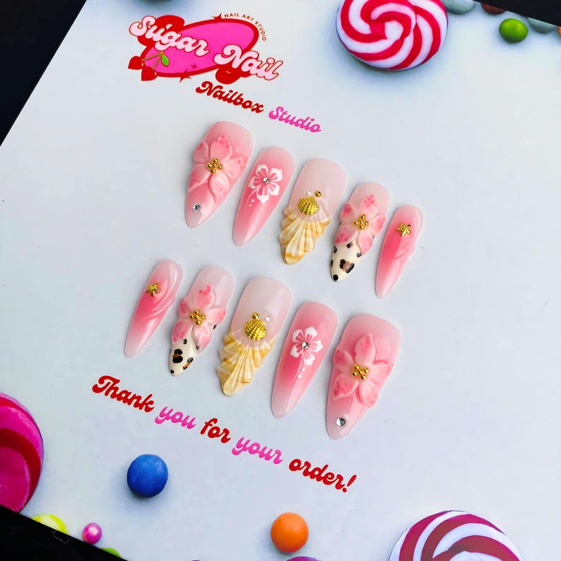 Each SugarNail set is crafted by hand using high-quality acrylic and gel, finished with a salon-grade glossy topcoat. Whether you're planning a holiday, prepping for a special event, or just want effortless beauty at home, our nails bring elegance and durability to your fingertips โ no appointment needed.