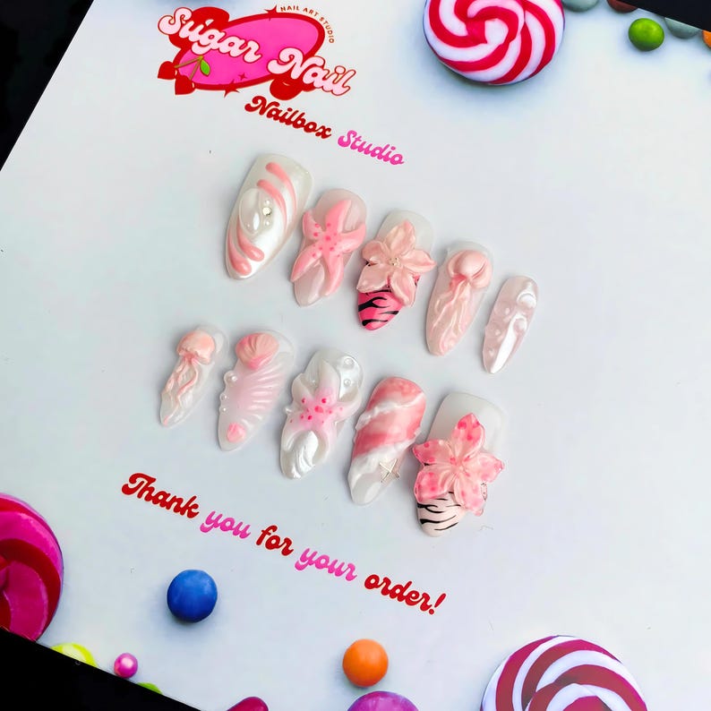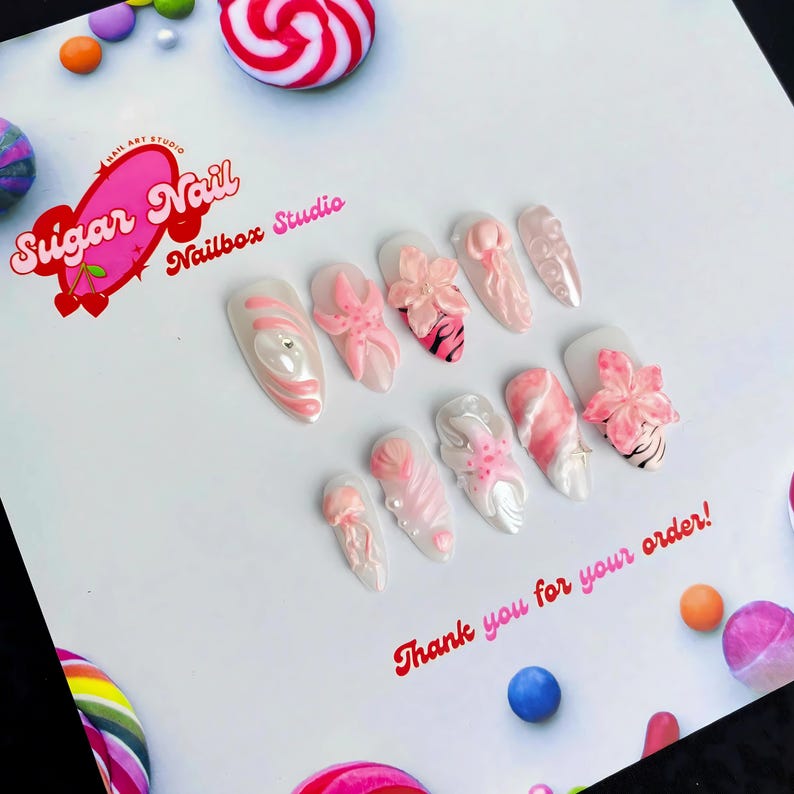 Each SugarNail set is crafted by hand using high-quality acrylic and gel, finished with a salon-grade glossy topcoat. Whether you're planning a holiday, prepping for a special event, or just want effortless beauty at home, our nails bring elegance and durability to your fingertips โ no appointment needed.