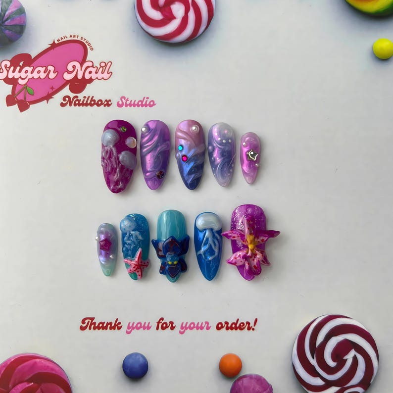 Each SugarNail set is crafted by hand using high-quality acrylic and gel, finished with a salon-grade glossy topcoat. Whether you're planning a holiday, prepping for a special event, or just want effortless beauty at home, our nails bring elegance and durability to your fingertips โ no appointment needed.