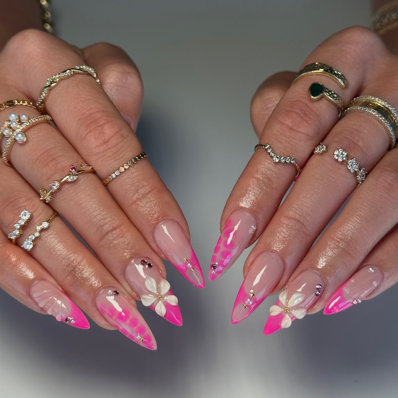 - 3D elements including flowers, shell charms, and textured details