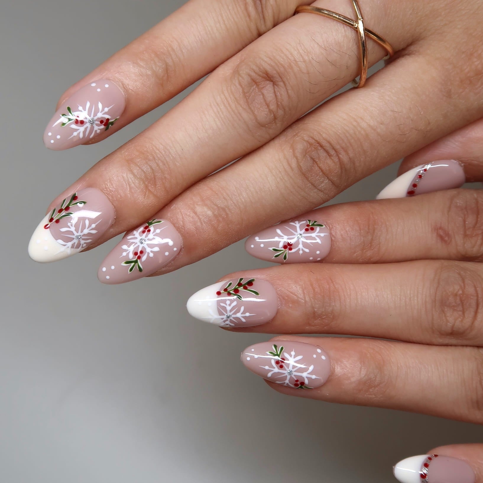 Get ready to shine this holiday season with Mistletoe Glam. Inspired by the festive charm of mistletoe, these press-on nails feature a perfect blend of rich greens, glistening golds, and elegant shimmer. The sophisticated design is adorned with subtle glitter and a touch of holiday sparkle, making them the ideal accessory for all your celebrations.
