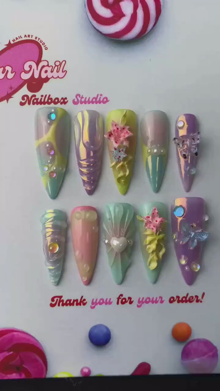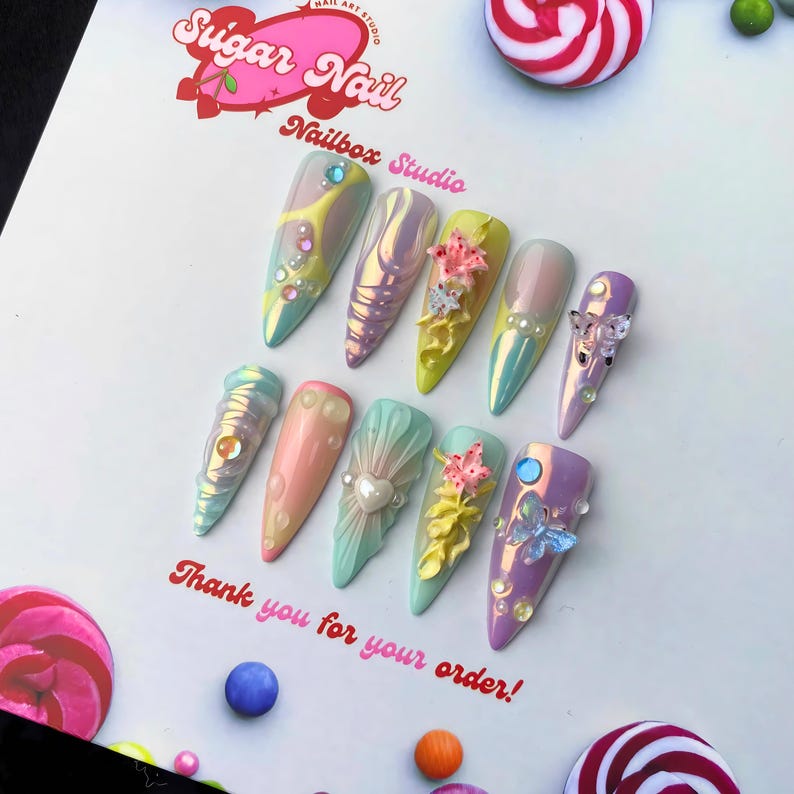 Dive into the vibrant energy of summer with Summer Splash — a handcrafted press-on nail set bursting with bright, playful colors.