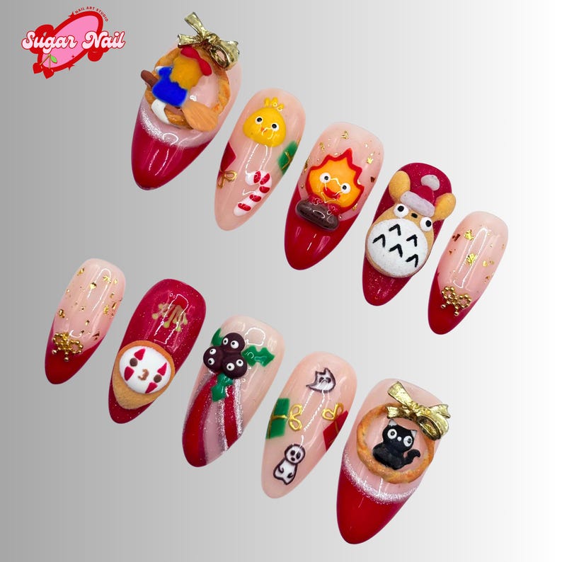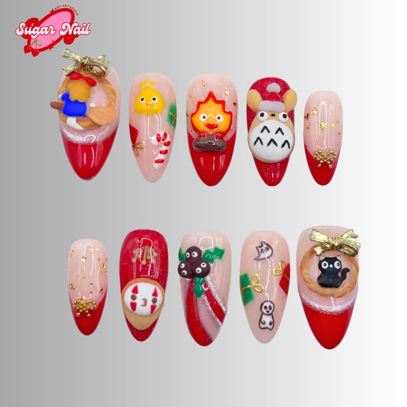 Tororo In Xmas Press On Nails – Adorable Totoro-inspired Christmas designs with cozy winter details. Long-lasting, cute, and perfect for festive looks, holiday vibes, and anime lovers.