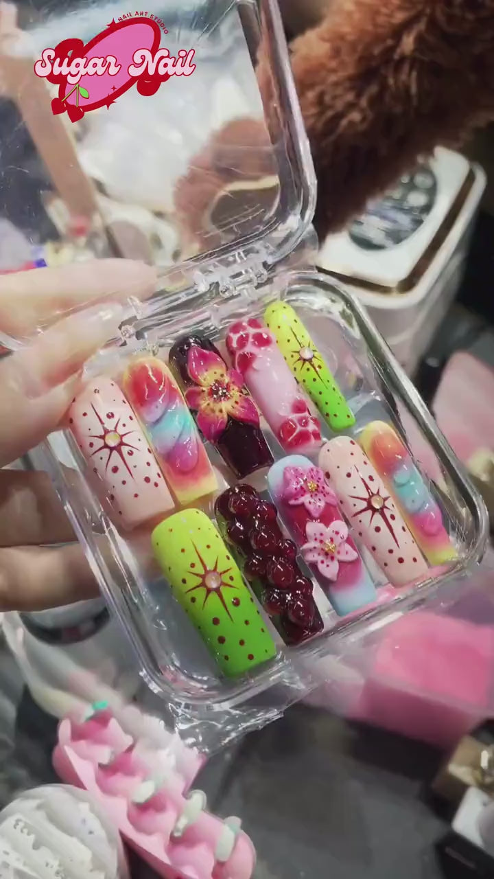 Bring the vibrant energy of the tropics to your fingertips with Tropical — a handcrafted press-on nail set bursting with bold, colorful shades.