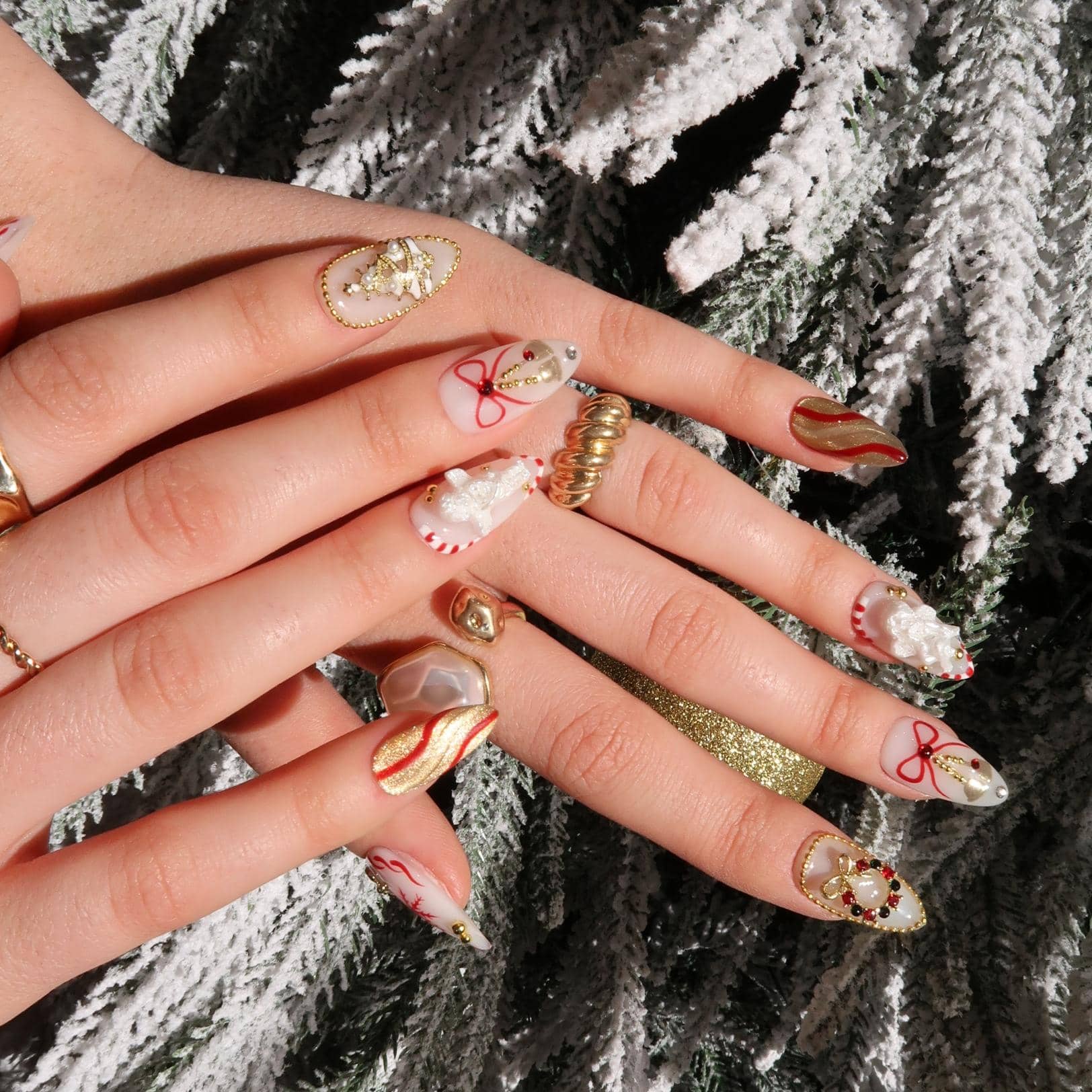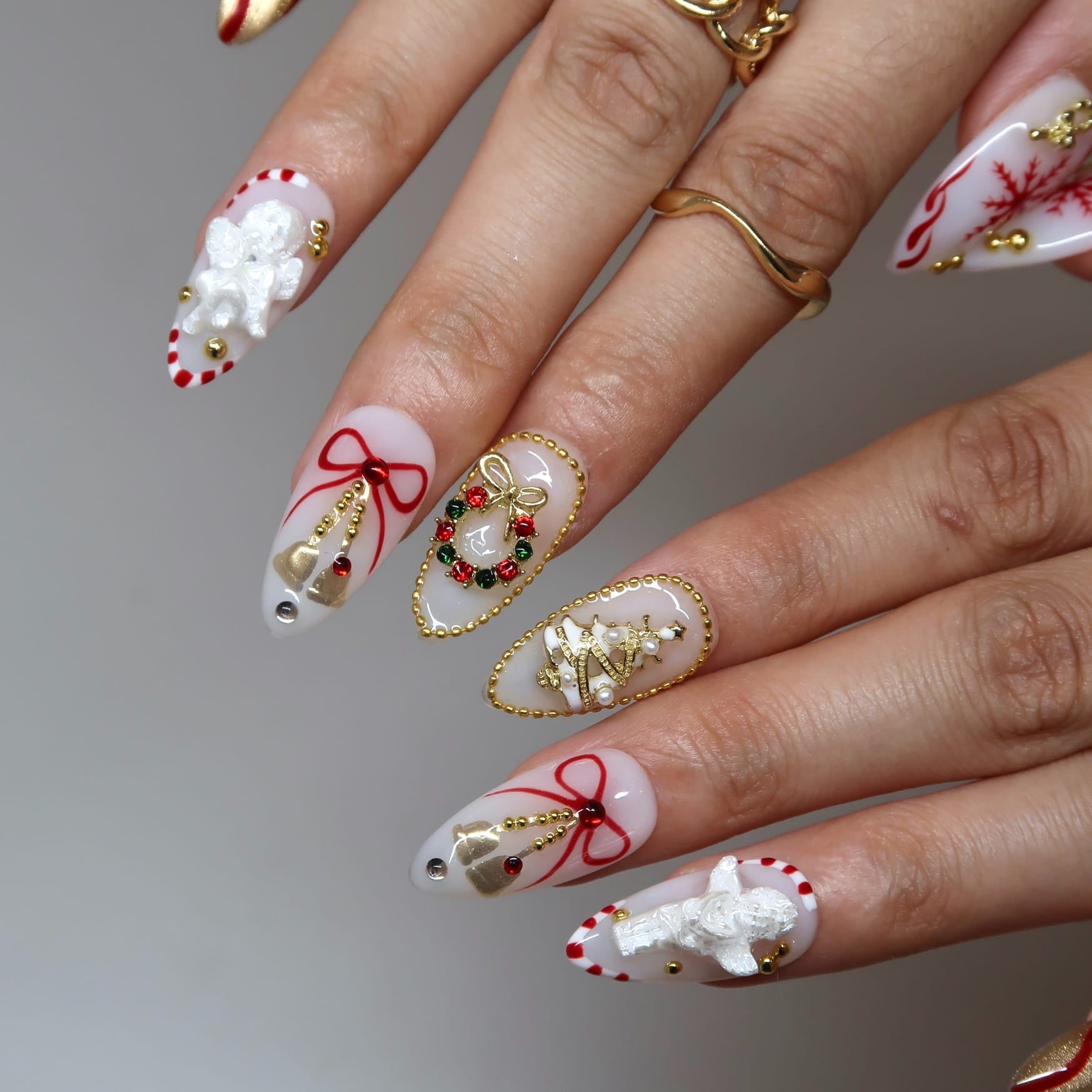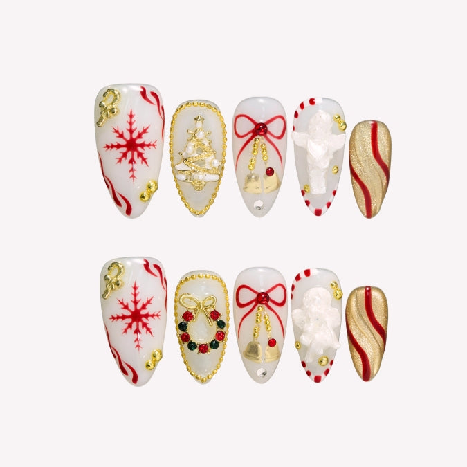 Celebrate the season with Twinkle Wreaths. This festive set features golden accents, tiny wreaths, bows, and candy-cane details—bringing classic holiday charm to your nails in minutes. Comfortable to wear, it’s the perfect way to add a touch of sparkle to every winter moment.