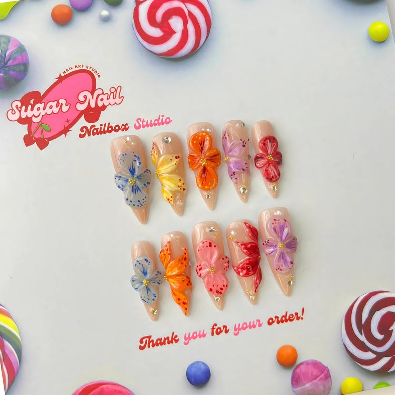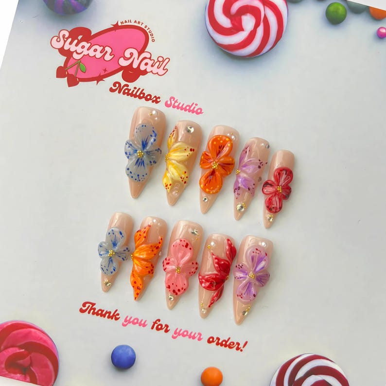 Vivid Blossom โ Bright floral press on nails with bold, vibrant colors. Long-lasting, eye-catching design perfect for summer, festivals, and cheerful daily style.