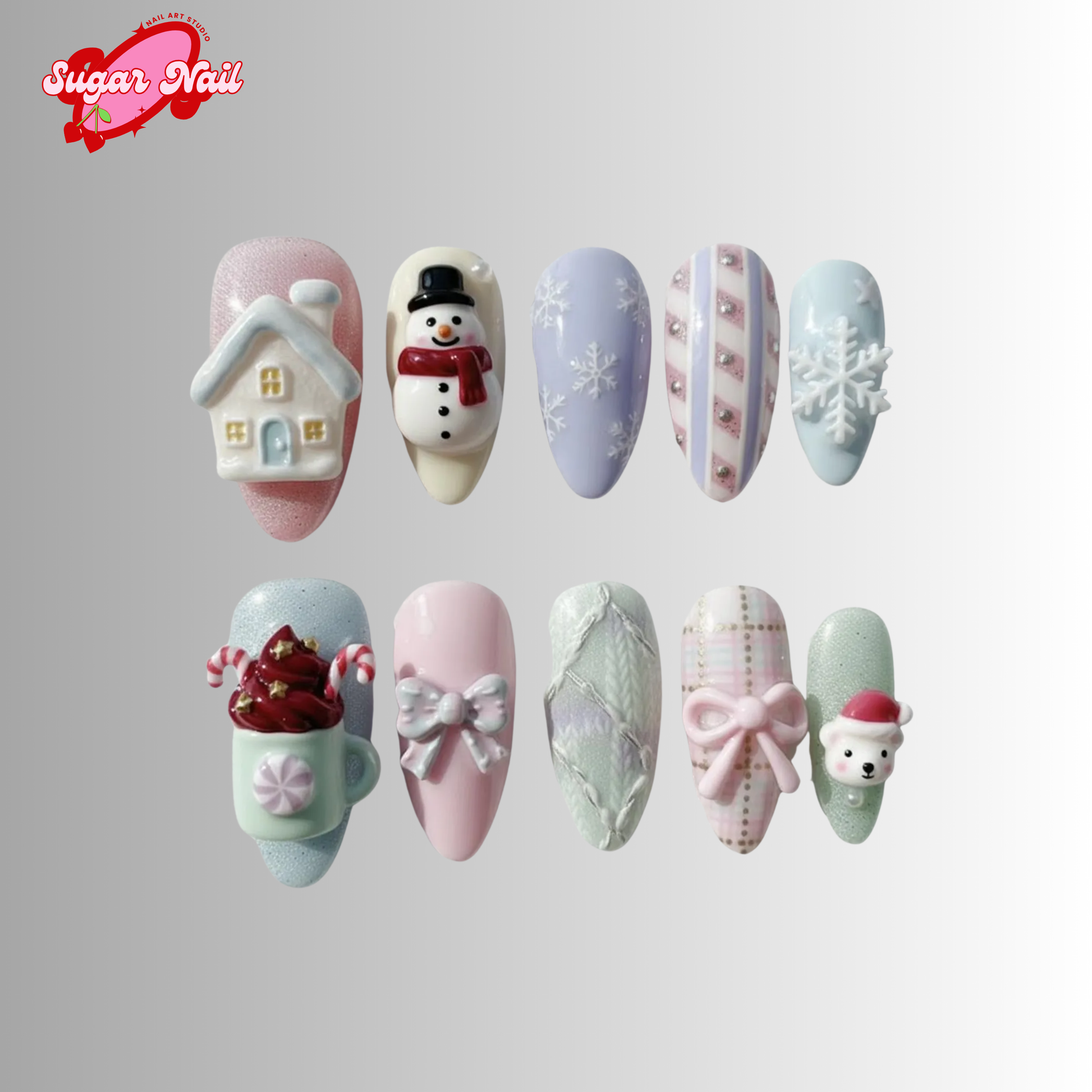 Each SugarNail set is crafted by hand using high-quality acrylic and gel, finished with a salon-grade glossy topcoat. Whether you're planning a holiday, prepping for a special event, or just want effortless beauty at home, our nails bring elegance and durability to your fingertips โ no appointment needed.