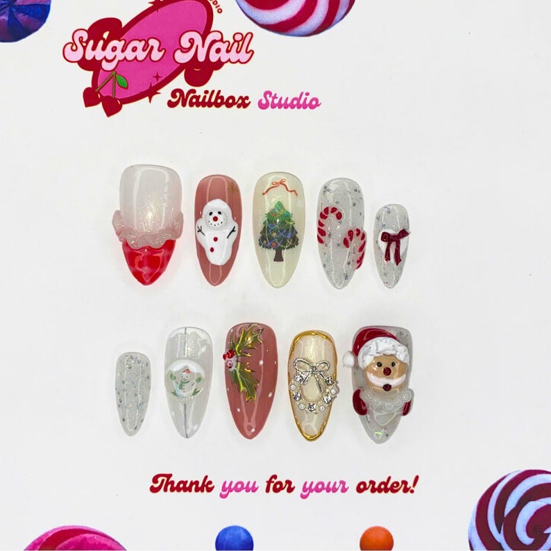 Xmas Joyful Press On Nails โ festive Christmas designs with bright holiday colors and sparkle. Easy to apply, long-lasting, perfect for cheerful seasonal looks.